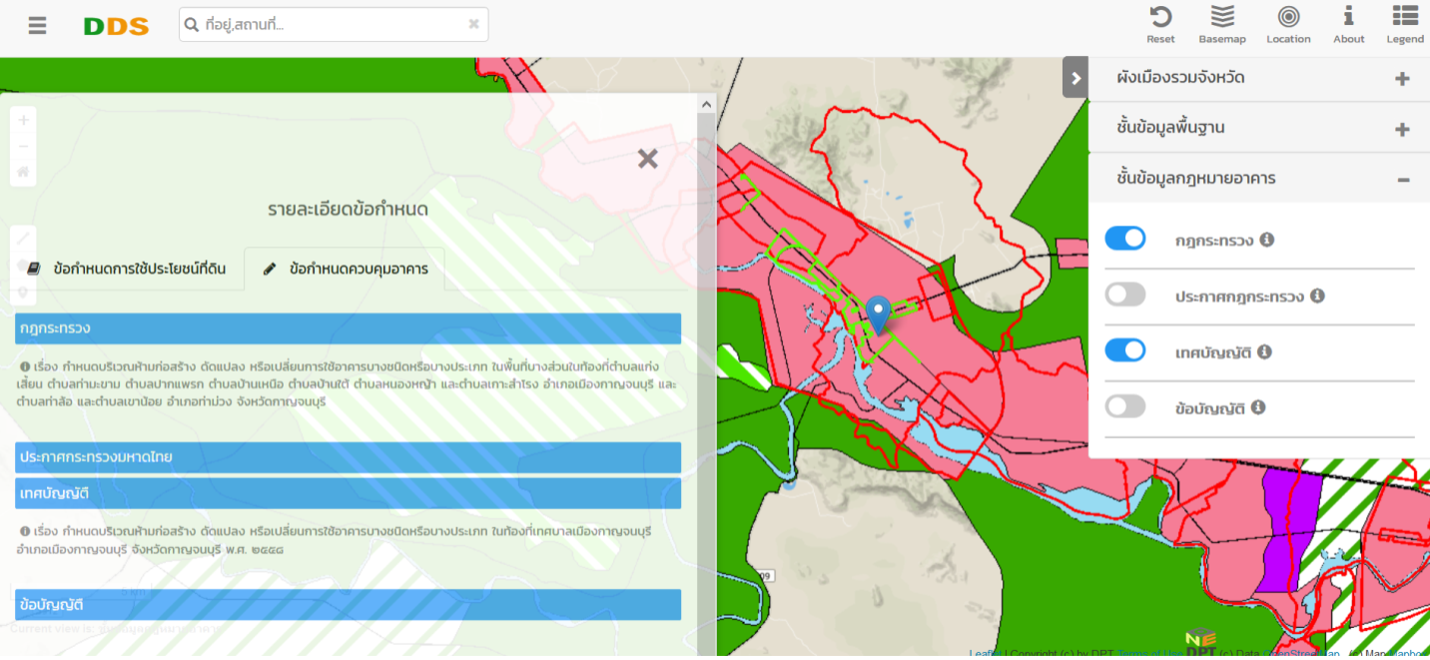 เพื่อตรวจสอบการใช้ประโยชน์ที่ดิน เช่น เกษตรกรรม โรงงาน พื้นที่อนุรักษ์ รวมไปถึงกฎหมายเรื่องอาคาร โดยการระบุที่เราต้องการตรวจสอบด้วยพิกัด ละติจูดและลองจิจูด.