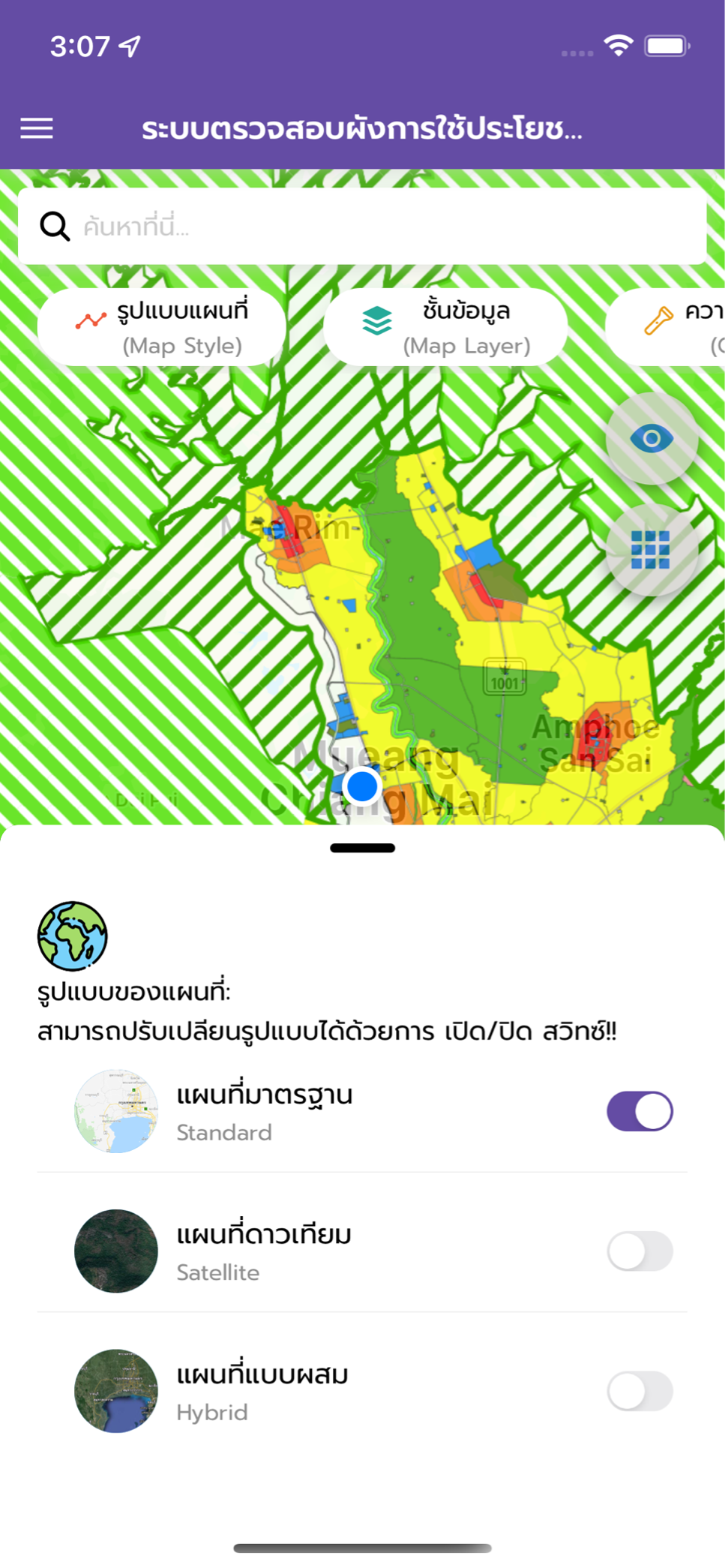 เพื่อตรวจสอบการใช้ประโยชน์ที่ดิน เช่น เกษตรกรรม โรงงาน พื้นที่อนุรักษ์ รวมไปถึงกฎหมายเรื่องอาคาร โดยการระบุที่เราต้องการตรวจสอบด้วยพิกัด ละติจูดและลองจิจูด.